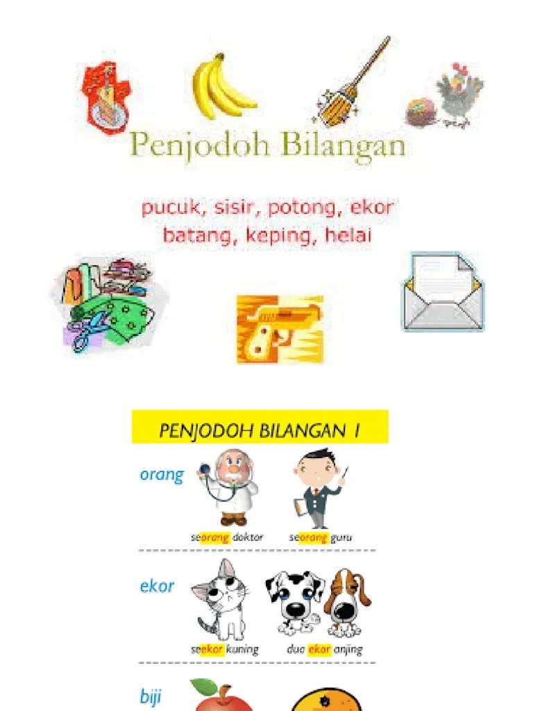 Yang berikut ialah beberapa contoh penjodoh bilangan serta penggunaannya. 2 beberapa urat rambutnya telah bertukar warna. Untuk benda yang panjang dan dapat digulung seperti rantai, dawai, tali, . Benda yang dirangkaikan oleh tali,benang,dawai dsb. Apakah penjodoh bilangan bagi gelang? Gelung digunakan untuk membilang benda yang panjang, berlingkar,. Batang, benda panjang atau tinggi, sebatang sungai, sebatang pokok ; Bentuk, benda yang melengkung, sebentuk cincin. 2, jam dinding = buah (contoh: . 1, jam tangan = utas (contoh: Penjodoh bilangan bahasa melayu ; Hari ini kita belajar apa?